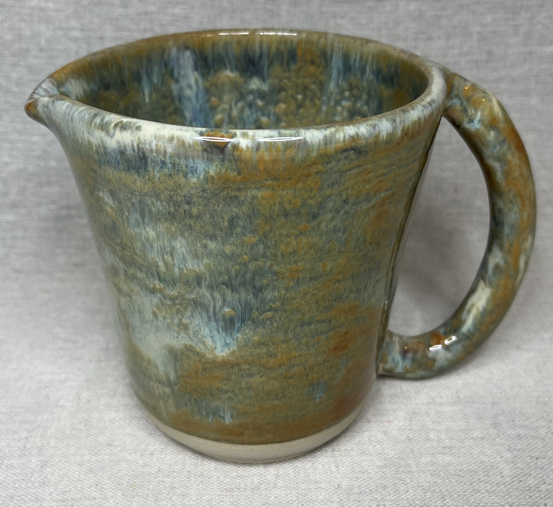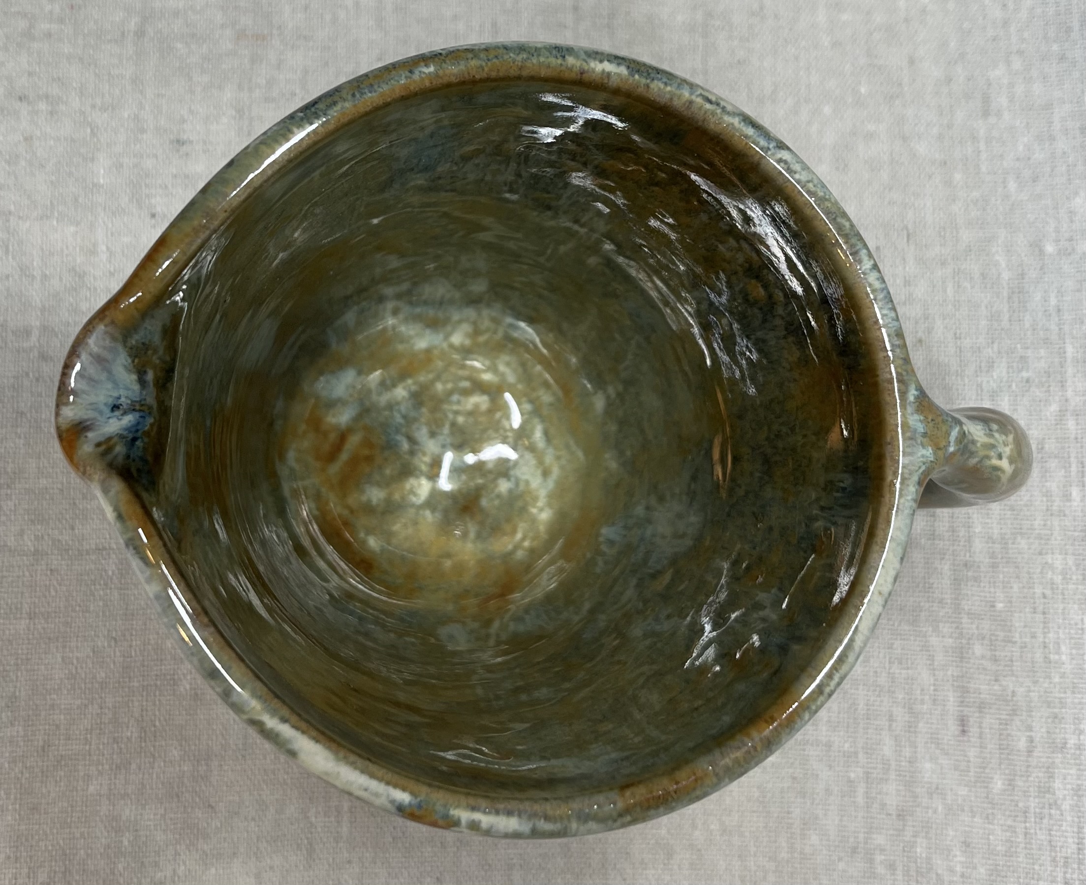 Ce pichet mêle un vert profond et des touches marron terreux, comme la nature après la pluie. Simple et chaleureuse, parfait pour servir vos boissons ou simplement recevoir un bouquet printanier. Posez le sur une table et apporter une touche de naturel à votre intérieur.
