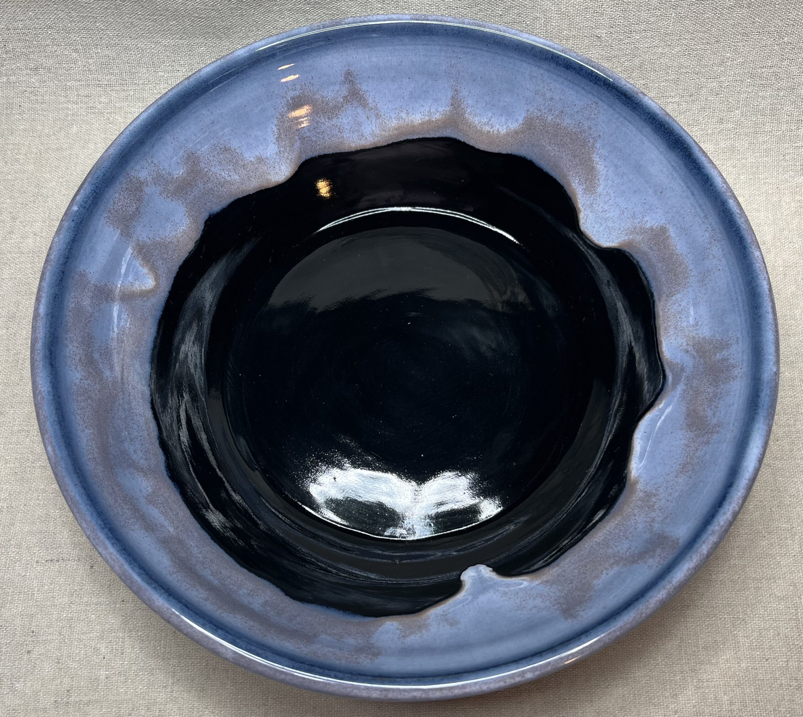 Ce saladier joue sur les contrastes de lumière et de profondeur. Le centre sombre capte le regard, tandis que le pourtour plus clair l’enveloppe doucement.