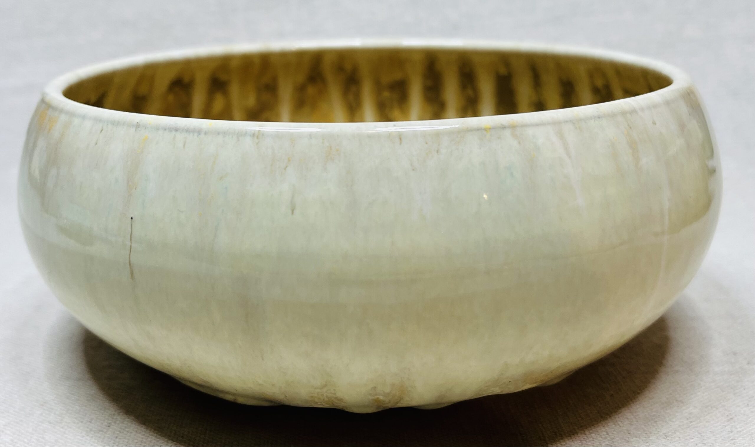 Ce saladier tout rond, aux nuances de marron clair et beige, évoque la douceur d’une citrouille.