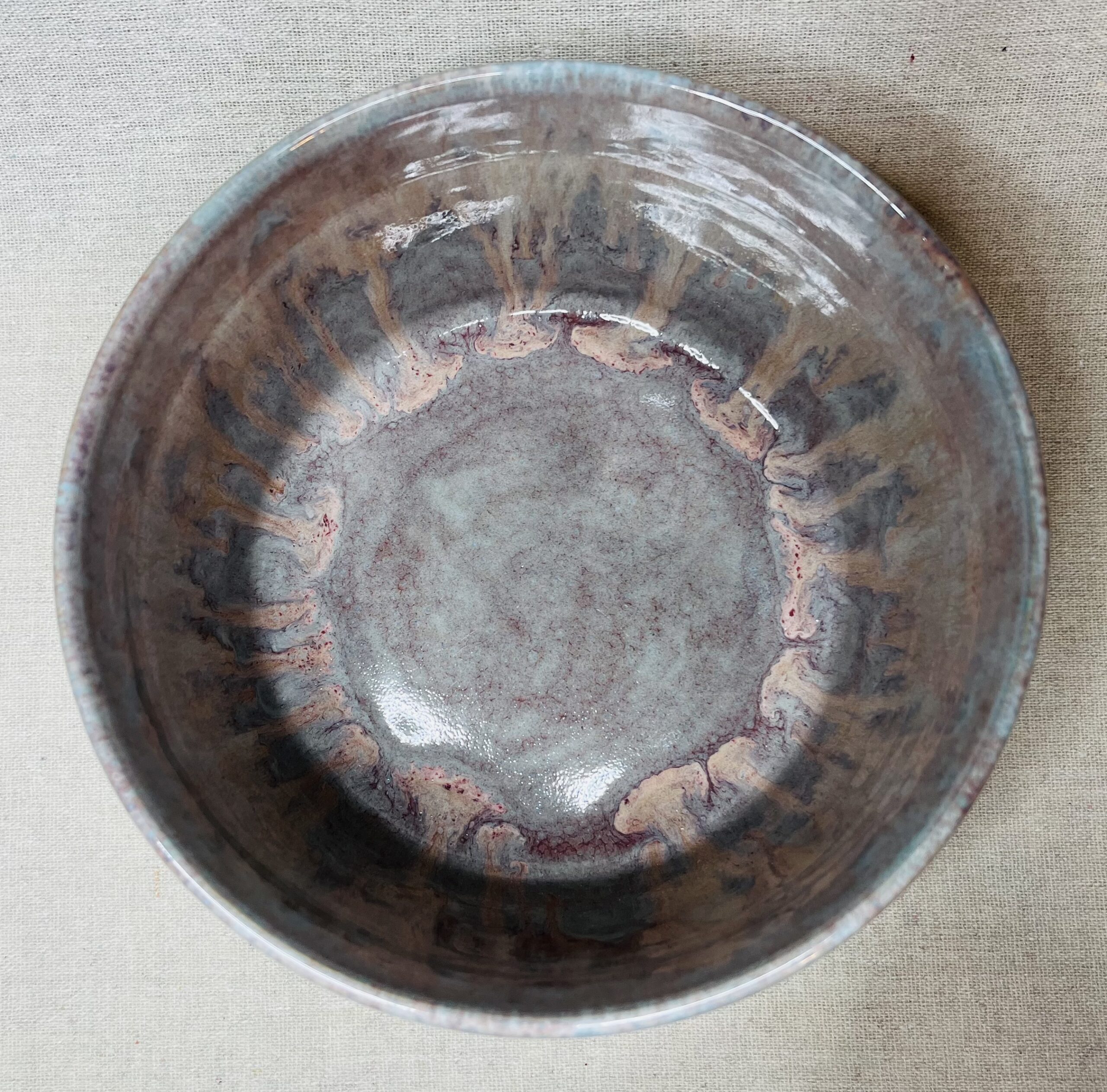 En m’installant à mon tour, j’ai imaginé la forme de ce saladier et mon imagination est allée jusqu’à la couleur. Des couleurs très douces, pour y déposer une poignée de cerises, des fraises ou d’autres gourmandises. Le mélange d’un bleu froid et de la chaleur de la cannelle lui apporte une teinte apaisante.