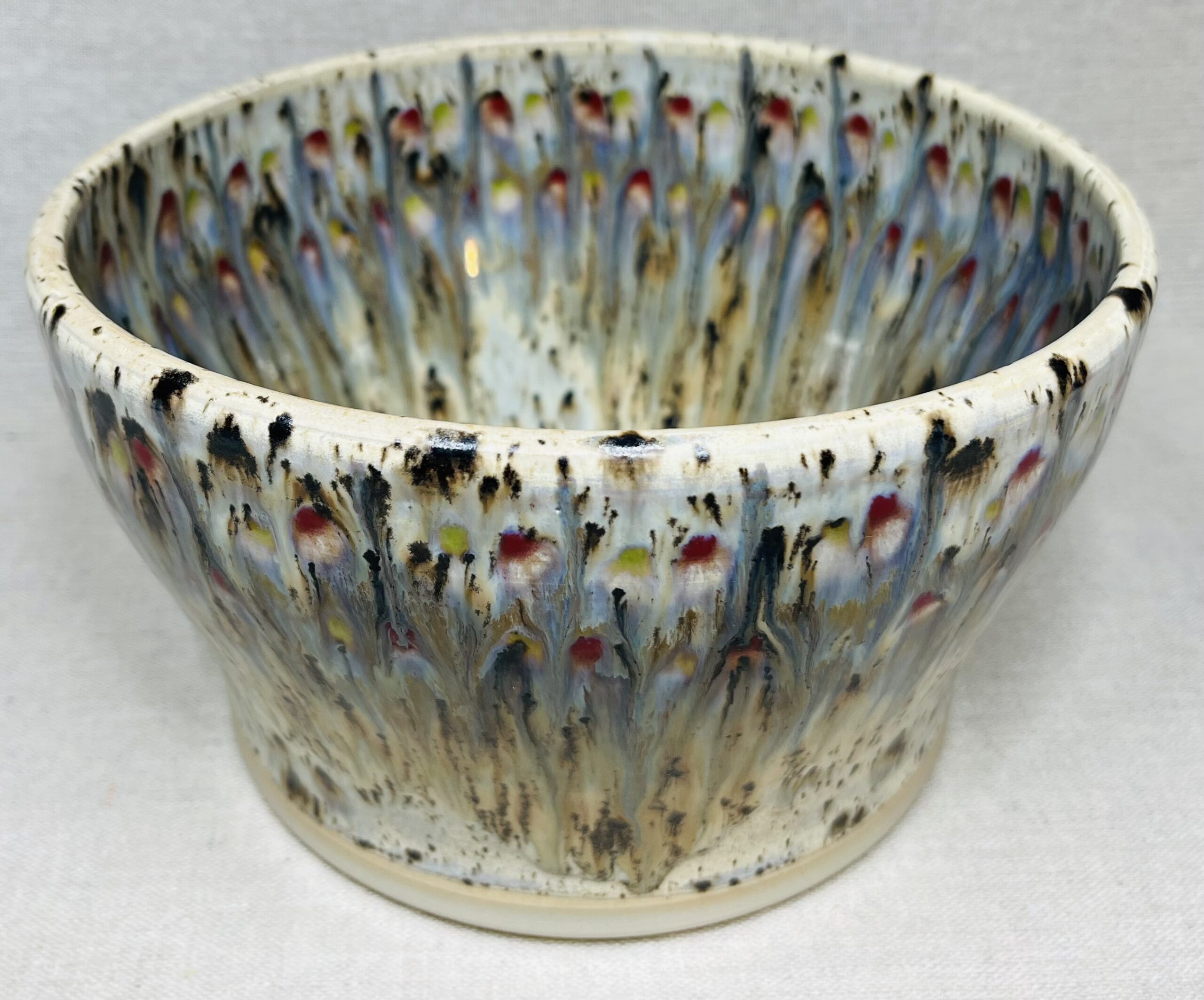 Un joli mélange de couleurs habille ce saladier généreux. Ces teintes me font penser à un feu d’artifice estival. J’y verrais bien une belle salade de fruits, et vous ?