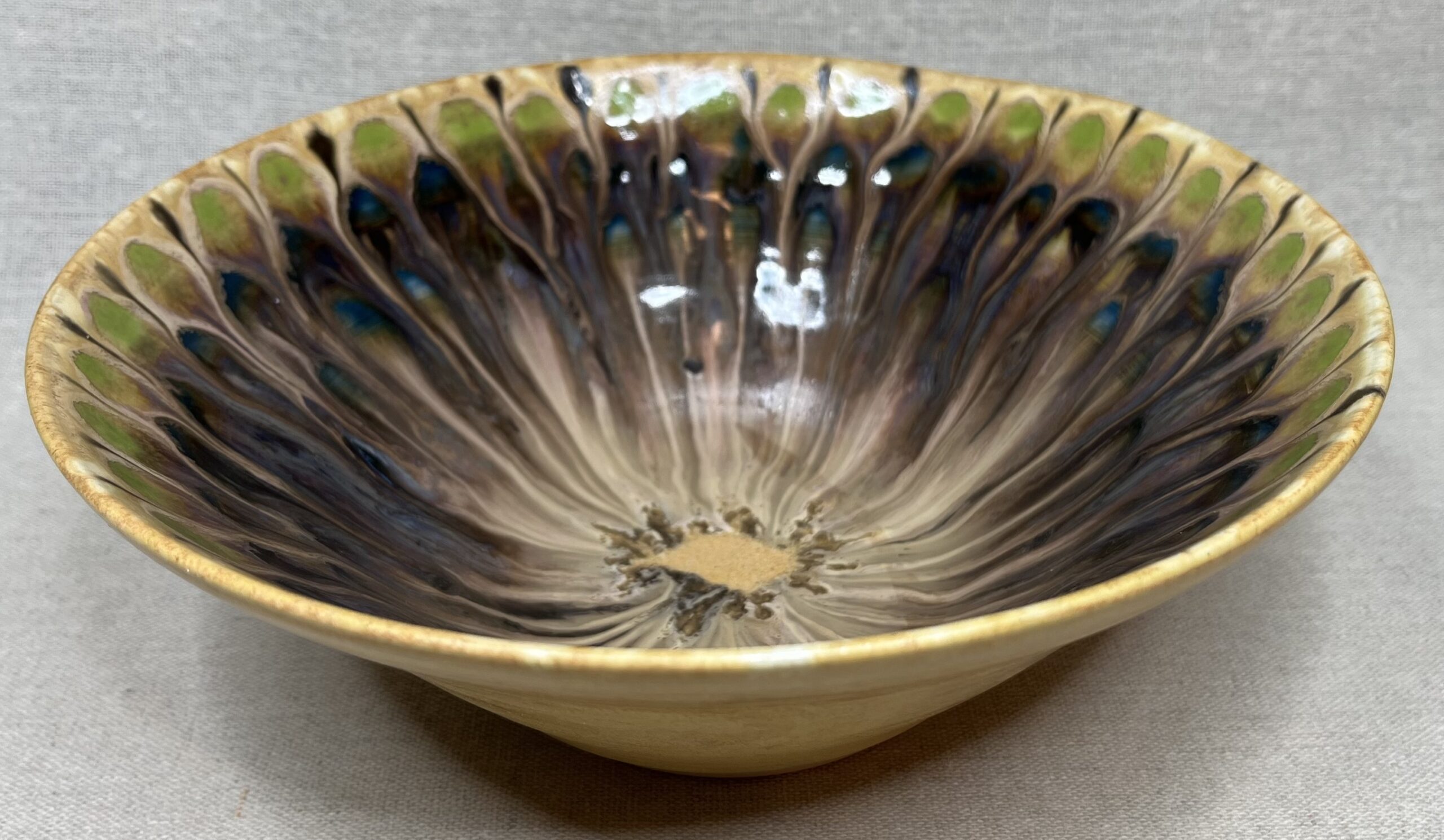 Quelle surprise et quelle joie quand j’ai ouvert le four ! Le mariage des couleurs est magnifique et montre à quel point la technique d’émaillage au pinceau est délicate. Je ne me lasse pas de le regarder. Belle pièce décorative !