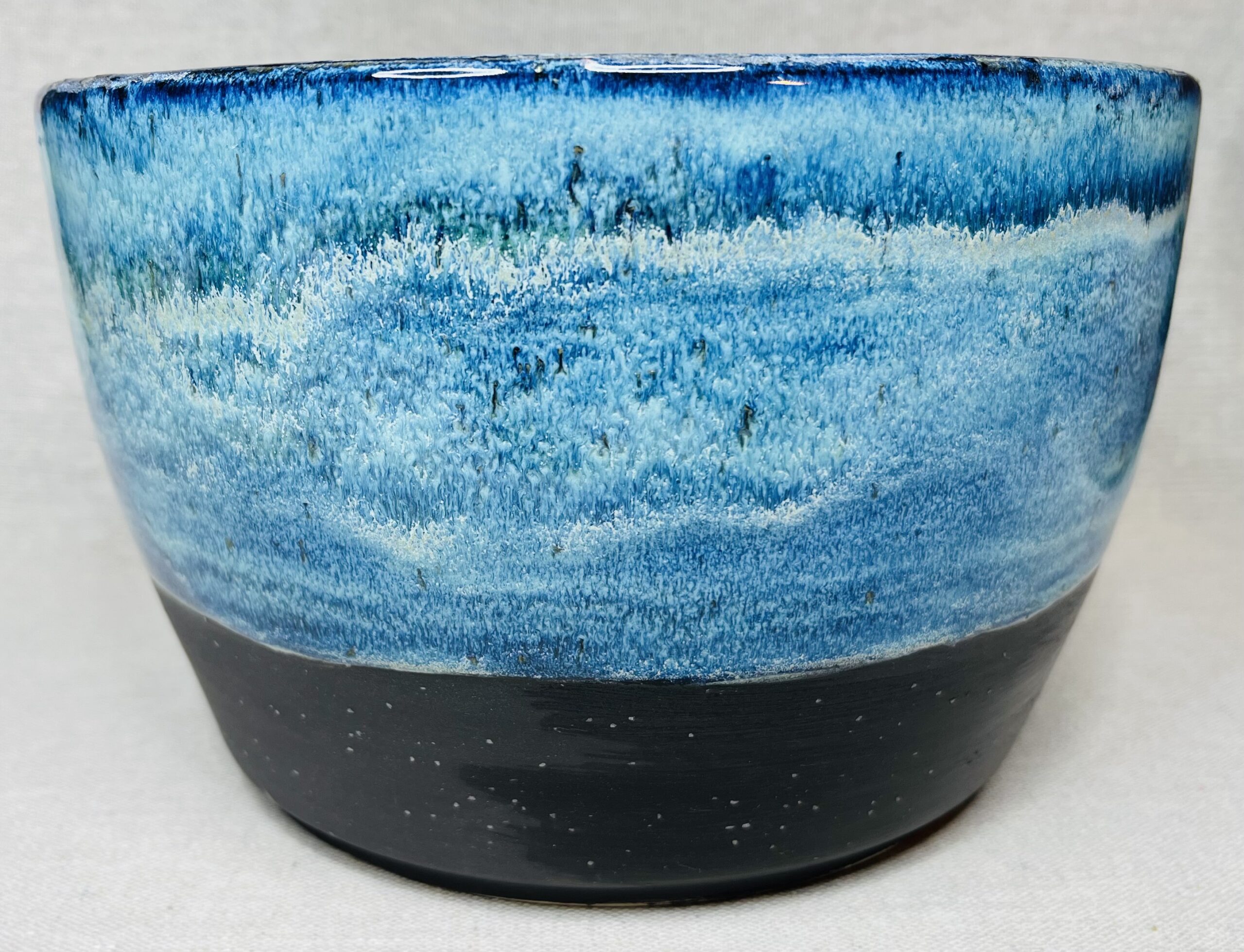 A la sortie du four, qu’elle n’a pas été ma surprise de voir que l’association du noir brillant, du blanc et d’un vert thé, à fait apparaitre un bleu profond, presque comme celui des vagues.