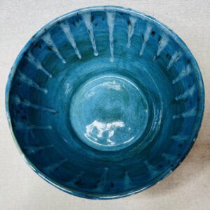 Saladier en céramique fait main aux reflets bleu-vert paon. Une pièce spectaculaire et unique pour votre table.
